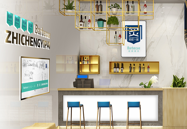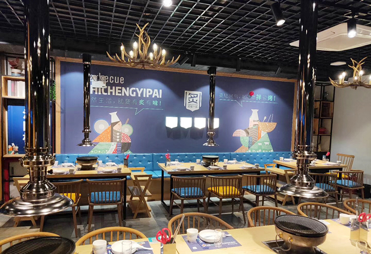 品深餐飲設計團隊通過這幾個方面的用心付出,通過品牌形象設計及主色調將品牌名及現拌烤肉,新鮮入味的核心特點傳達出來,再通過空間立體化中各種裝飾、家具、燈光、配飾、墻面主題文案等。形成了從虛的文化到實的場景,將難于描述清晰的品牌內涵處處展現在空間裝飾,品牌物料,廣告宣傳中,以一種潤物細無聲的方式將炙成一派的品牌內涵、產品賣點植入到顧客心智中,形成鮮明的品牌印象,成為消費口口相傳的海口首家現拌炙子烤肉店,每晚營業到凌晨4點,排隊嚴重,月均營業額突出百萬,實現優良的經濟效益。