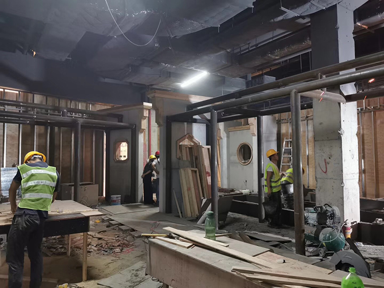 餐廳地面工程:地面材料鋪設,各種水電線管安裝鋪設,后廚地面的防水防滑處理。