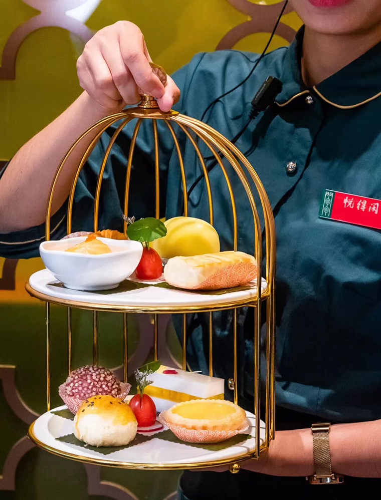 廣式花窗,又稱為滿洲窗。源自于廣州最開始與外國開展海外貿易,是典型的舶來品。滿洲窗不同的款式和花紋組合體現了使用者的生活富足與審美情趣。廣式花窗可以很好的表現廣式點心茶樓的品類屬性,具有一目了然,一見如故的特性。在悅得閑點心