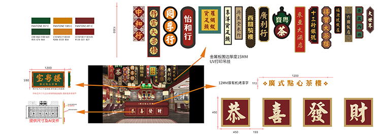 6、空間軟裝陳列設計:烘托廣式點心的用餐環(huán)、強化茶樓老廣州西關的環(huán)境風格、表達并傳播寶粵樓的品牌文化。