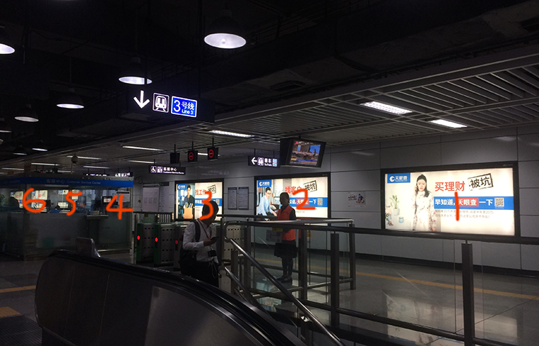 通過在地鐵站現場觀察,品深發現蘩樓的地鐵海報位置單面靠墻,閱讀動線是沿著墻的路徑左右行走,目標是向前方換乘或出站,由于客流密集,路過此處的人完全無法停下來,看到海報的大部分的機會是眼睛的余光一掃而過,邊走邊看。