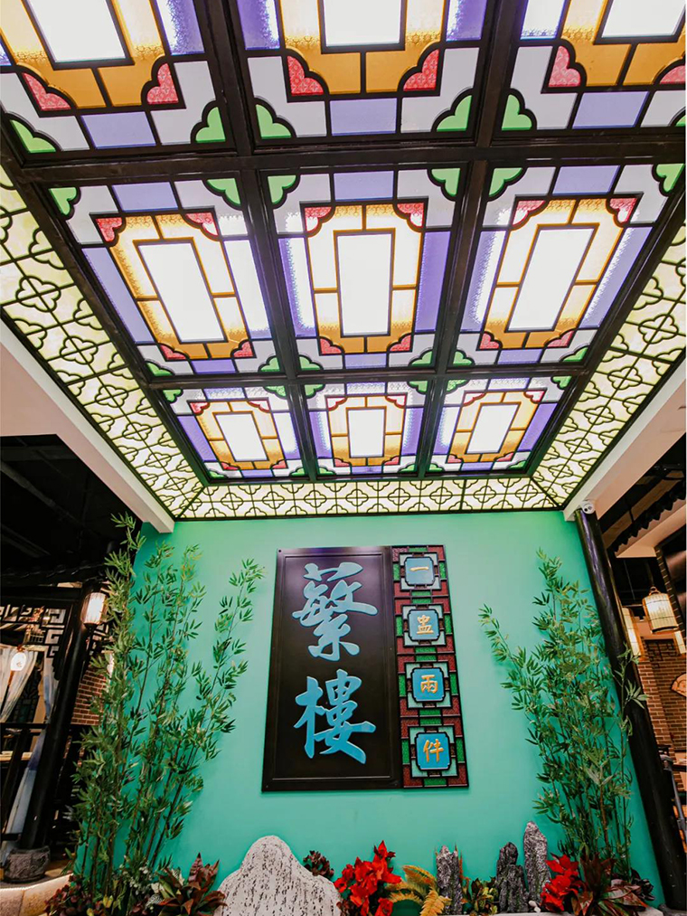 品深餐飲全案策劃設計在2019年全案策劃設計的悅得閑廣式點心茶樓,通過“紅配綠,大紅配大綠”這種大膽的色彩運用,將“得閑飲茶”的廣式休閑飲食生活文化營造的非常鮮明,時尚又極富歷史厚重感,深受廣大顧客的喜愛,為門店創造了持續穩定的客流。