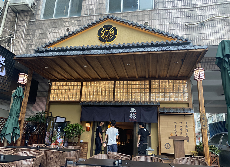 如:我們2021年做的餐飲全案項目:玉椿 燒鳥居酒屋,整體的品牌空間視覺呈現出江戶時代建筑風格,目的就是塑造出這是一家日料很地道,味道很純正,環境很舒服,消費很實惠的日本料理老牌子。