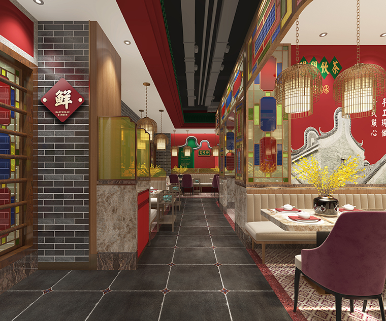 、軟裝設計、茶樓品牌植入、茶樓平面布局設計、廣式點心茶樓燈光設計