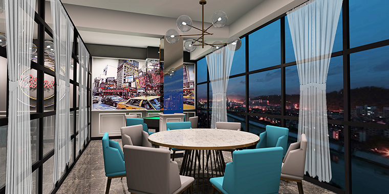 港灣茶餐廳空間裝飾裝修設(shè)計(jì)圍繞“時(shí)尚、休閑、放松”為設(shè)計(jì)哲學(xué),將原來餐廳建筑物的外墻全部打掉,形成大面積落地幕墻玻璃,視覺通透,明亮純凈,周邊路過的顧客紛紛駐足停留,拍照打卡。