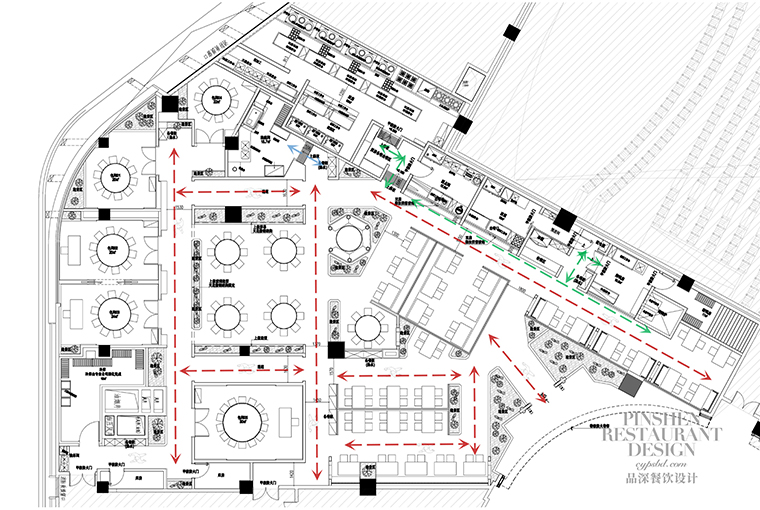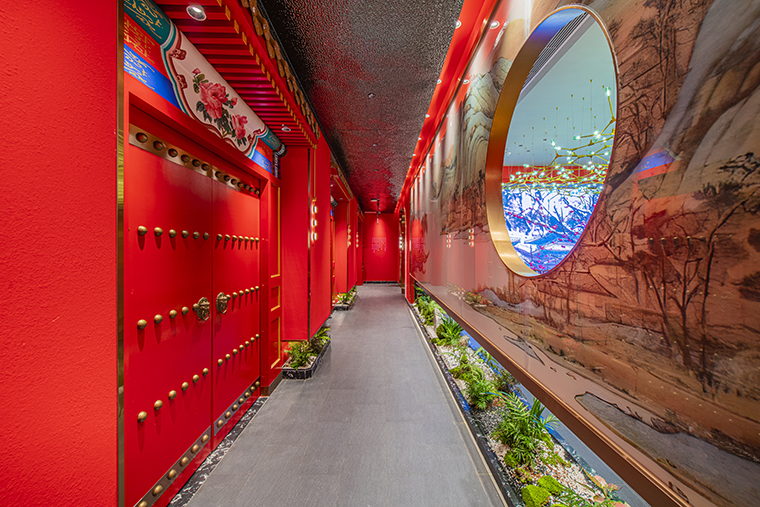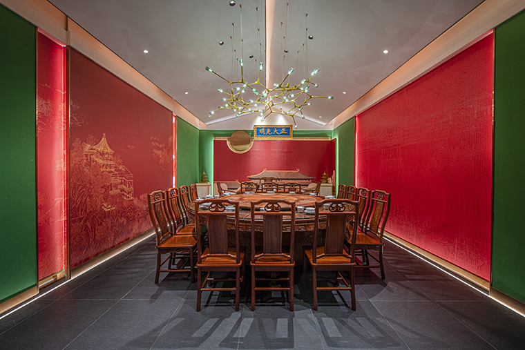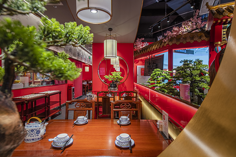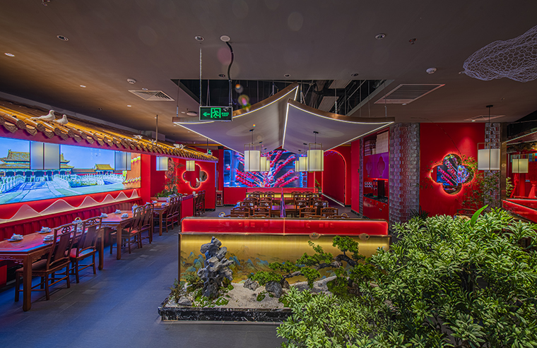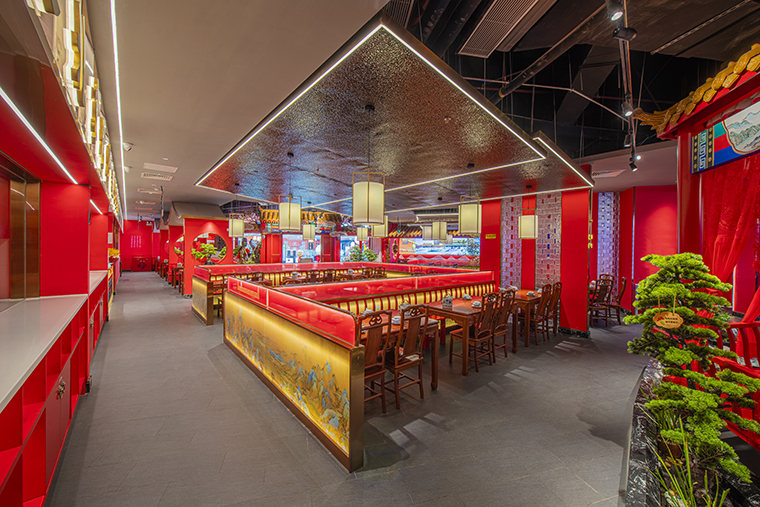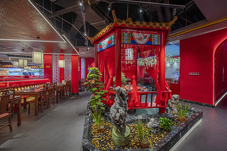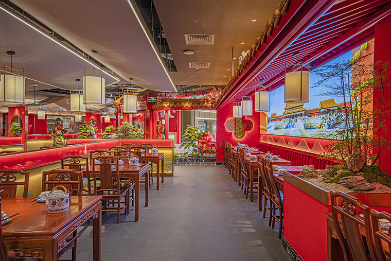 1、本項(xiàng)目為京味張東莞大朗碧桂園里悅里店,總面積約829平方米。用中國紅強(qiáng)化品牌內(nèi)含的北京皇城文化,令人印象鮮明;