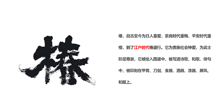 品牌的借船出海,搭文化便車。中間斷開的線條,是玉字的變形,象征品牌典雅,精致的特性?;照轮虚g一個(gè)日本文字“椿”,精準(zhǔn)表達(dá)品牌核心名。